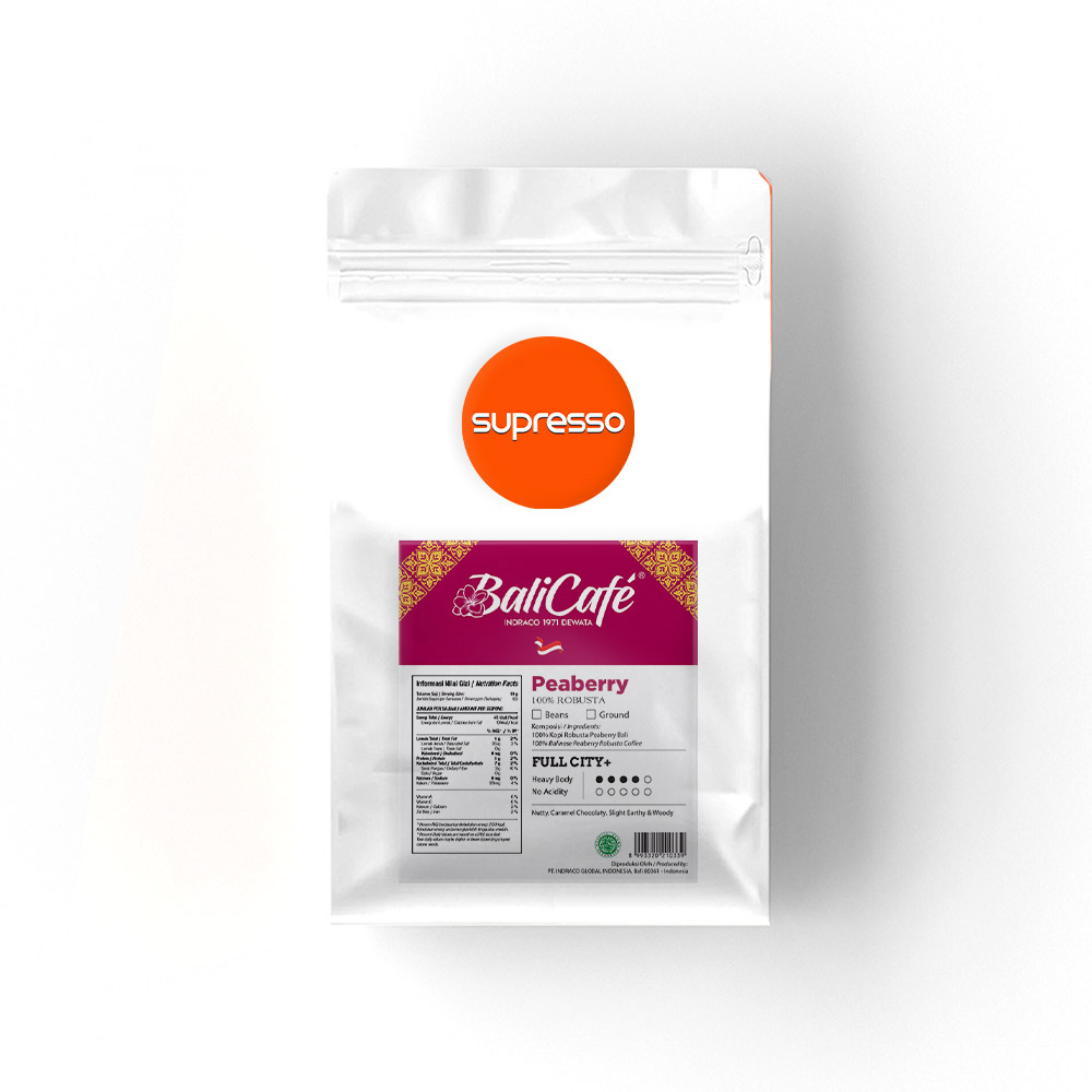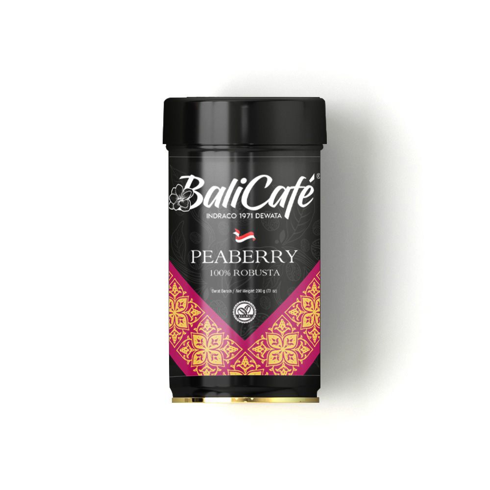 Kombinasi tekstur kekentalan Robusta dan aromanya yang kuat, Balicafé Peaberry Robusta Coffee Beans kaya akan cita rasa kopi Bali yang mewah.