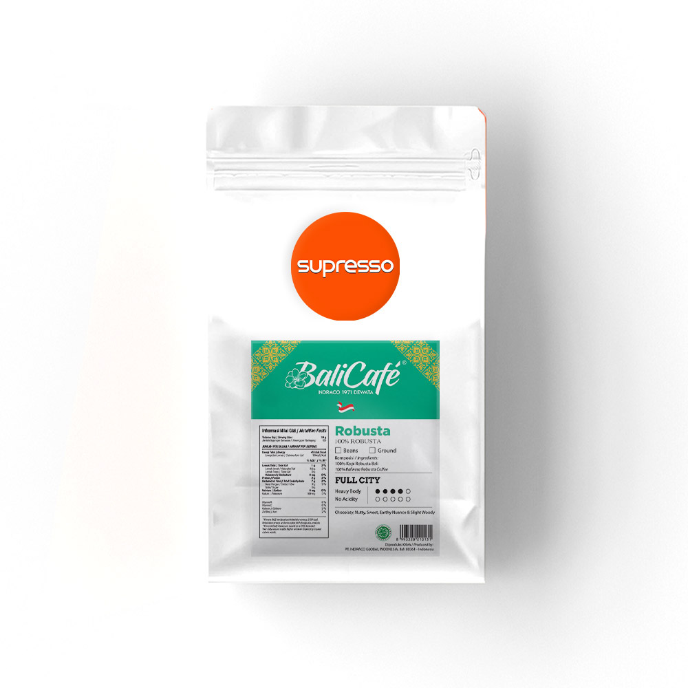 Kombinasi tekstur kekentalan Robusta dan aromanya yang kuat, Balicafé Robusta Coffee Beans kaya akan cita rasa kopi Bali yang mewah.